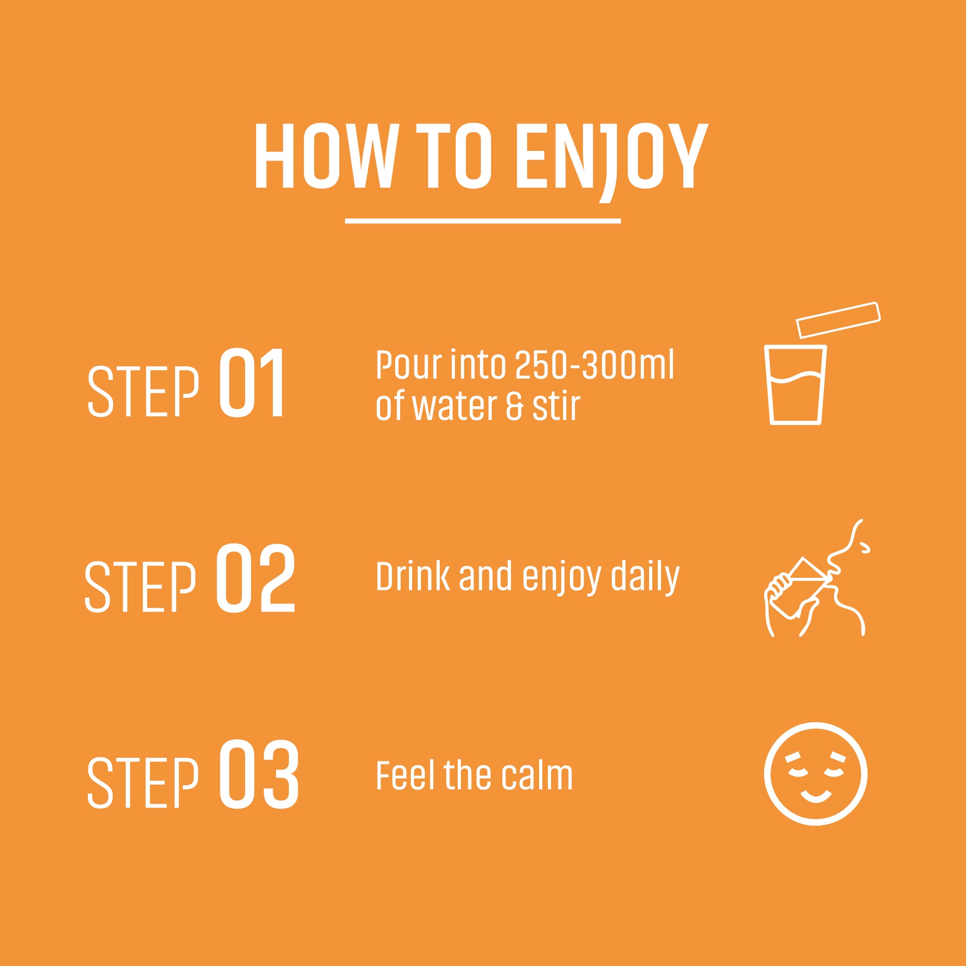 Perfect for busy lifestyles, simply stir a sachet into water once a day and enjoy. With 20 individual servings, the pack is ideal for home, work, or travel, making stress management effortless, wherever life takes you.